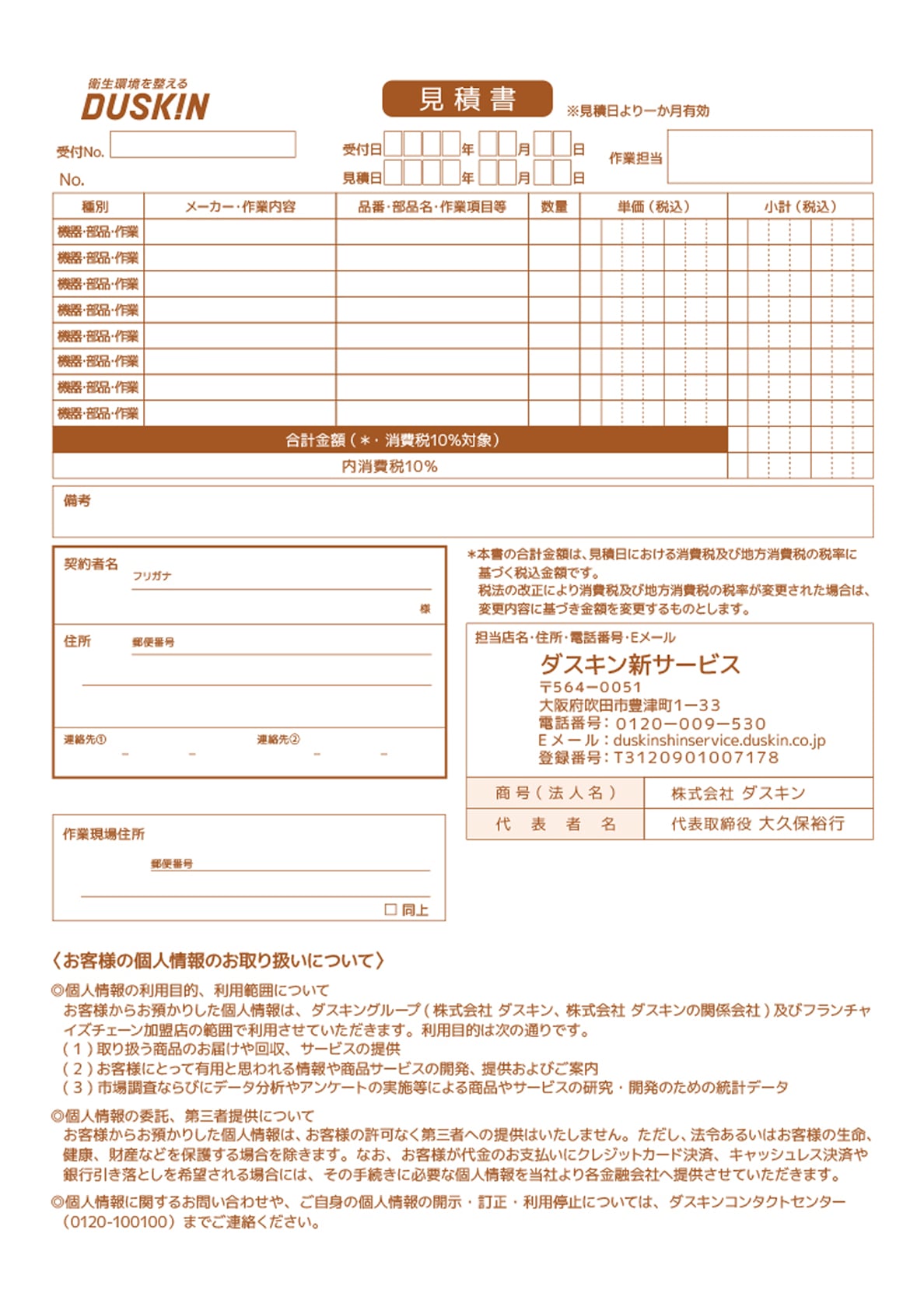 他社では修理後に高額な追加料金が発生するケースもありますが、お客様に安心してご依頼いただけるよう、ダスキンでは修理前に極力現場を確認し、具体的な作業内容と料金をご提示します。
